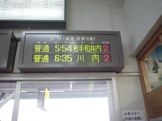 台風襲来、岩泉線に乗る 一日かけて北から大回りして宮古に到達し、一泊していよいよ本題の岩泉線に乗車だ、というときに問題が発生した。 またもや台風である。 丁度この日台風15号が接近し、秋田から青森まで東北を横断するルートを辿ろうとしていた。もろに直撃である。一体どうなるのか。というか、僕はもうこういう星の下に生まれている人間なのか。ホテルでニュースを見ながら自分のあまりの雨男っぷりにもはや諦めすら感じつつ、その日は床に就いた。 翌朝、窓の外を見ると若干風は吹いているものの、雨は降っていなかった。天はまだ僕を見放してはいなかったようだ。ニュースでは相変わらず台風がどうとか言っている。しかし、これが嵐の前の静けさだろうが何だろうが、とりあえず列車が動けばそれでいいのだ。 僕は意気揚々と5時54分発、岩手和井内行き岩泉線始発に乗り込んだ。 |